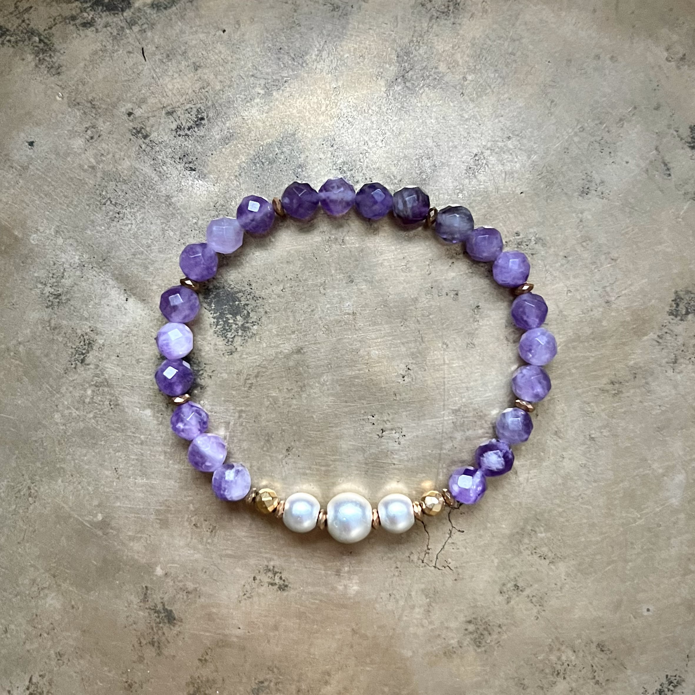Ta wyjątkowa biżuteria łączy w sobie delikatne piękno naturalnego ametystu z subtelnym blaskiem hematytu, tworząc kompozycję, która przyciąga wzrok i podkreśla indywidualny styl.