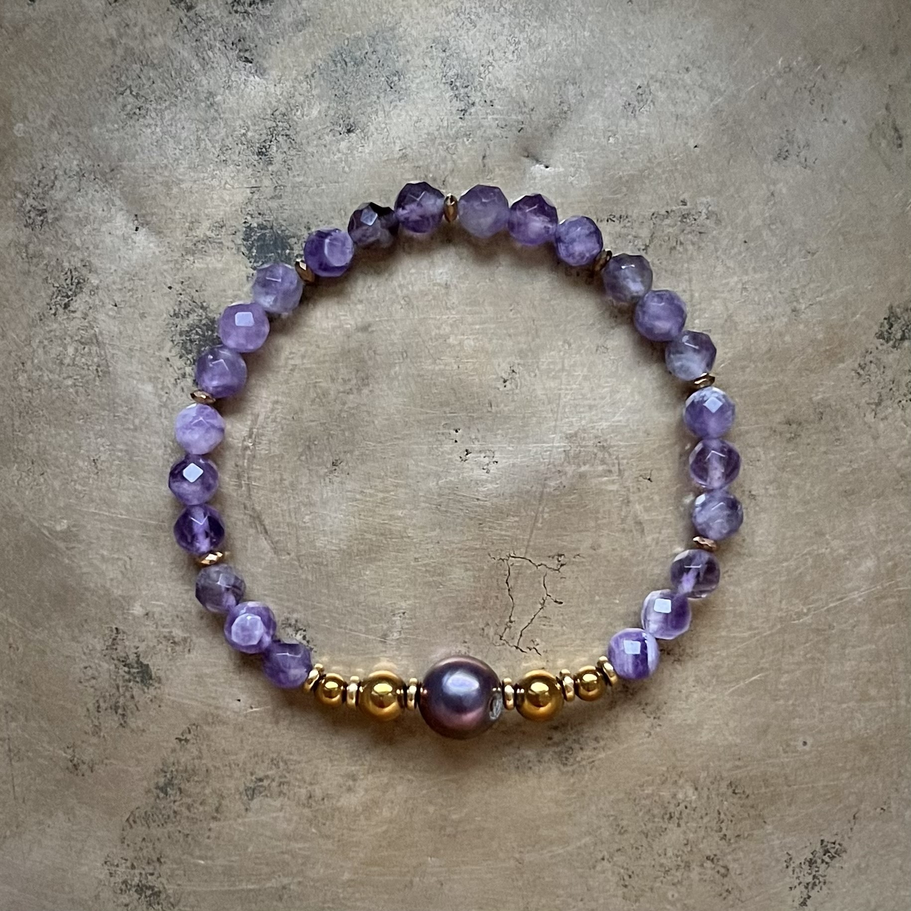 Poczuj delikatną energię, która płynie z połączenia dwóch niezwykłych skarbów natury. Ta bransoletka z fioletowego ametystu i naturalnej perły emanuje spokojem, harmonią i kobiecą aurą tajemnicy. Ametyst, znany od wieków jako kamień intuicji i równowagi, współgra tu z perłą – symbolem czystości, mądrości i wewnętrznego blasku.