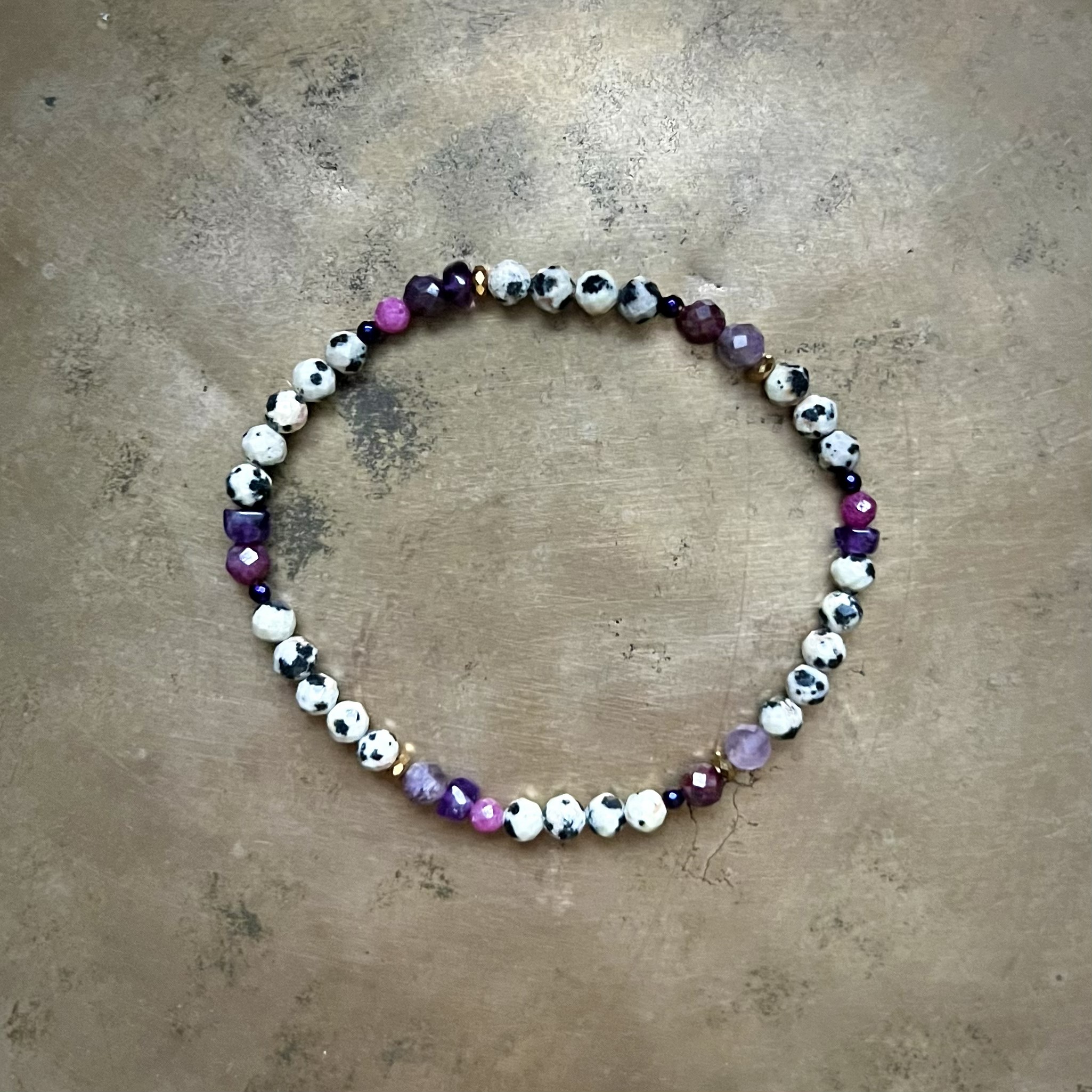 Stabilizująca energia jaspisu z ochronną i kojącą mocą ametystu to wyjątkowe połączenie, które tworzy tę bransoletkę. Jaspis wspiera równowagę emocjonalną, dodaje siły i wytrwałości, natomiast ametyst działa relaksująco, chroni przed negatywnymi wpływami i wspomaga koncentrację oraz intuicję.