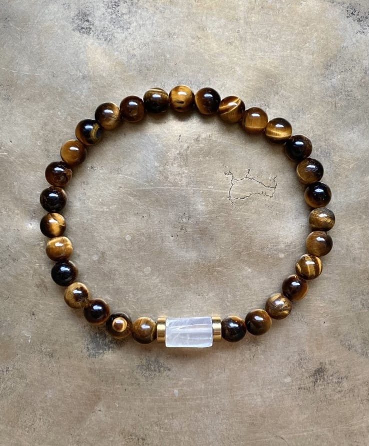Męska bransoletka z tygrysiego oka z kryształem górskim– siła, styl i charakter w jednym, zawarte w eleganckiej biżuterii. Naturalne kamienie o hipnotyzującym połysku przyciągają spojrzenia i dodają pewności siebie. Idealna dla mężczyzny, który wie, czego chce. Doskonale pasuje do eleganckiego, wieczorowego outfitu jak i do bardziej luźnej wersji.