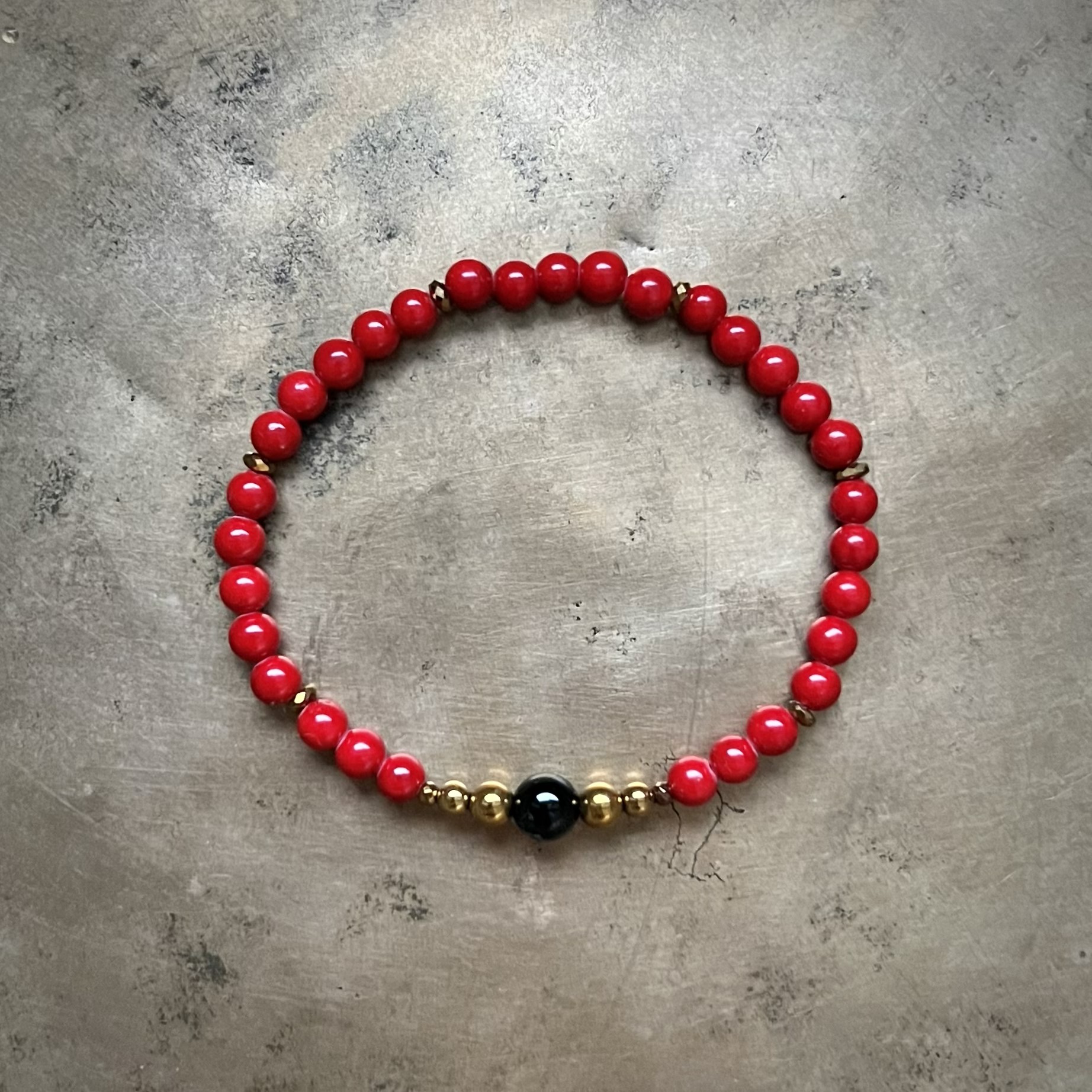 Ta wyjątkowa bransoletka wykonana z jaspisu czerwonego to połączenie naturalnego piękna i energetycznej siły kamienia. Jaspis czerwony dodaje odwagi, witalności i determinacji, wspiera skupienie oraz pomaga w realizacji celów. Idealna zarówno na co dzień, jak i na wyjątkowe okazje, bransoletka podkreśla Twój indywidualny styl, a jej naturalny kolor i struktura sprawiają, że każda sztuka jest niepowtarzalna.