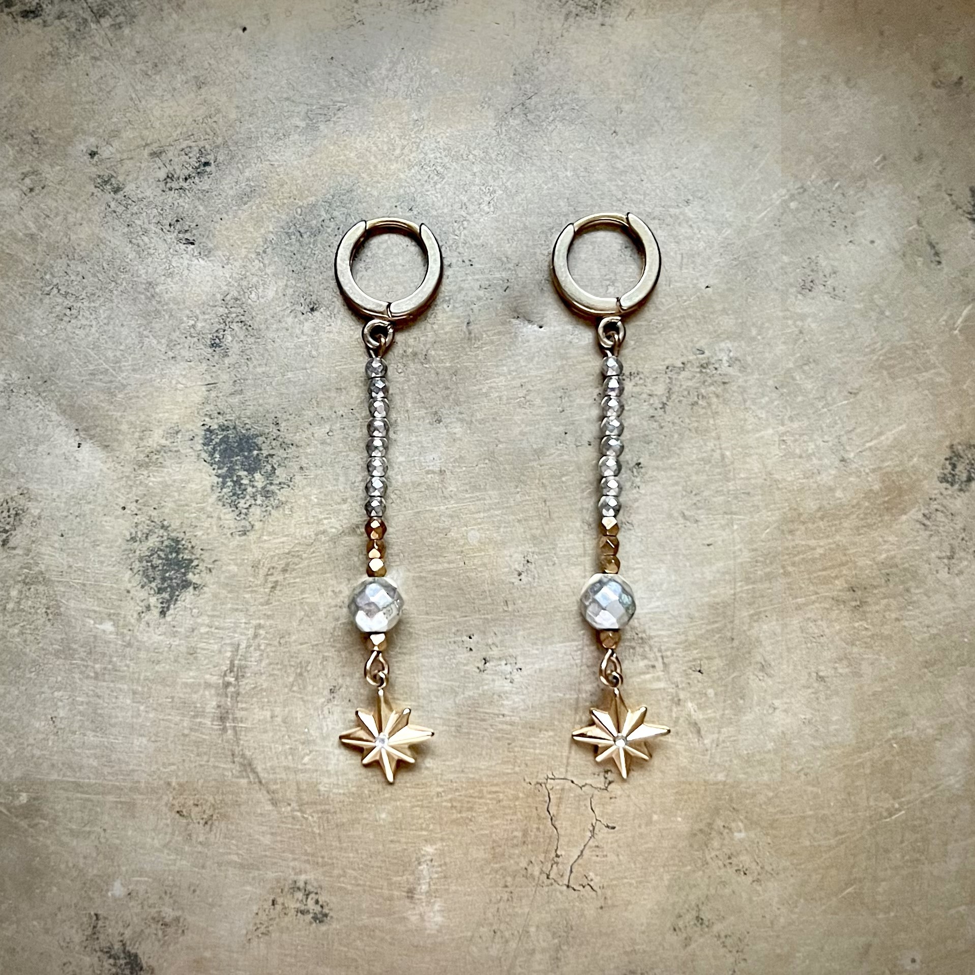 Symbol róży wiatrów przypomina, że każda droga zaczyna się w sercu. Połączona z hematytem – kamieniem siły, uziemienia i odwagi – staje się przewodnikiem w codziennym chaosie. Te kolczyki to nie tylko ozdoba, ale duchowy kompas dla kobiet, które podążają własną ścieżką. Wygodne, na zapięciu bigle angielskie a jednocześnie eleganckie długie i lekkie kolczyki na każdą okazję.